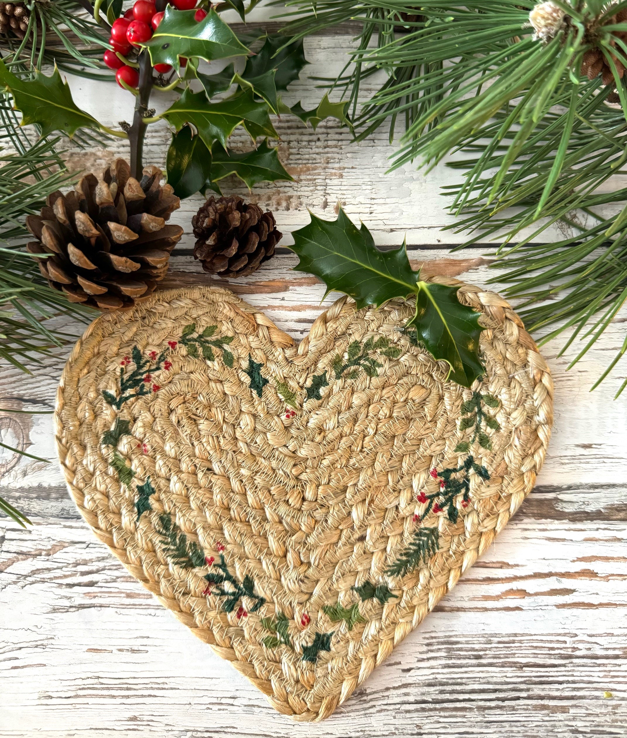 Our Natural Christmas Heart Coaster is printed with a simple wreath design.