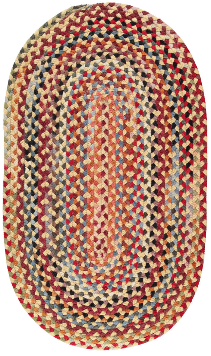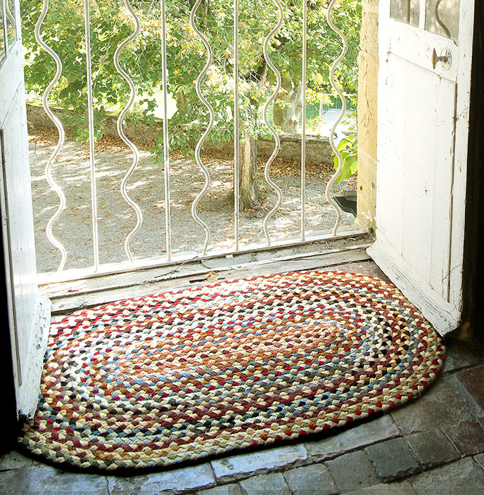 This classic braided rug has been made with a wide braid, giving the appearance of a rug that has been made from strips of cloth.