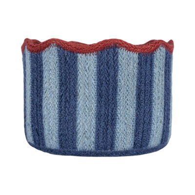 Pale Blue and Navy stripe with a red scallop.